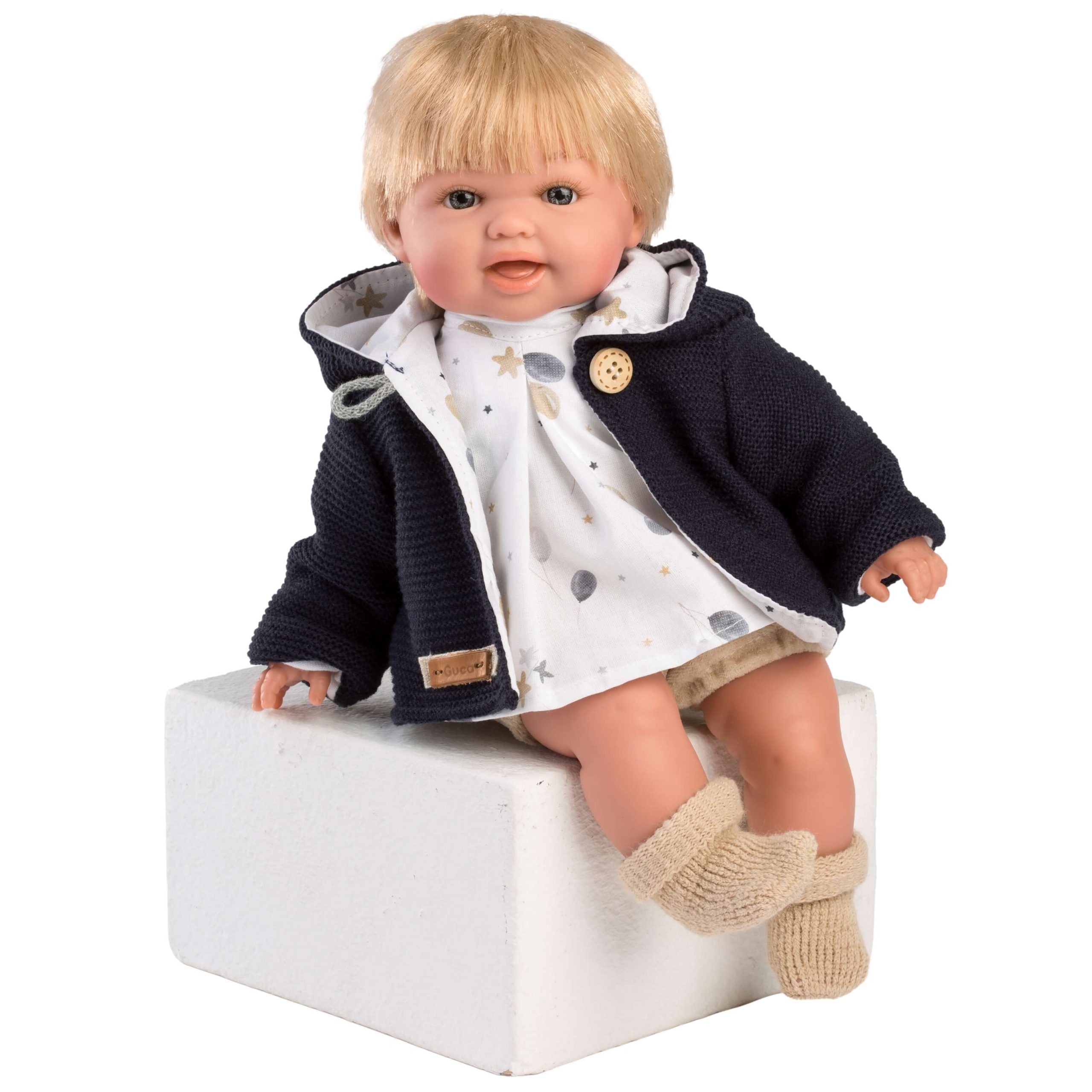 Nathan est une poupée reborn garçon qui éclaire chaque journée avec son allure radieuse. Ses cheveux blonds, d’une douceur exquise, couronnent un visage expressif empreint d’une joie enfantine.