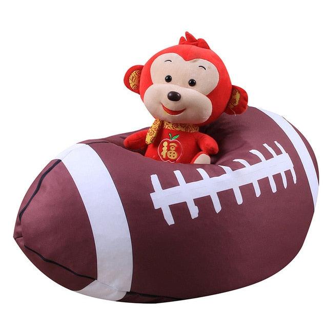 Football. Sac de rangement en forme de football, sac de basket-ball en peluche, chaises pour enfants