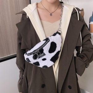 Sac banane en peluche rétro imprimé animal, classique vintage tendance urbaine chic