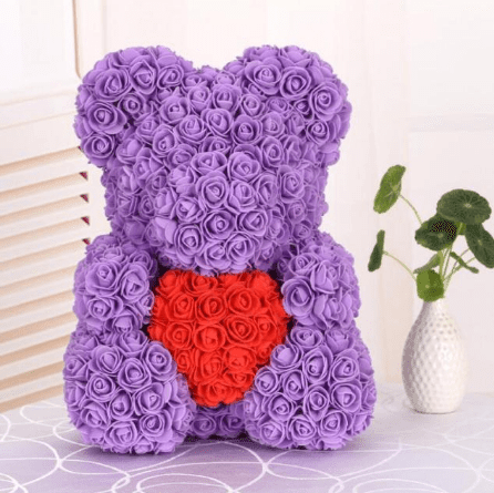 Oubliez le bouquet de fleurs prévisible et surprenez l’être cher de votre vie en lui offrant cette meilleure peluche en roses pour la Saint-Valentin. Cet ourson en roses de couleur violet et rouge est fabriqué avec des roses artificielles. Vous n’avez donc pas à vous inquiéter de déclencher des allergies aux fleurs vivantes.